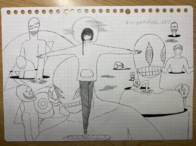 @start_yuji 初参加させていただきます アナログだったりデジタルだったりで気の向くままに描いております 月と異形と手がお気に入りです