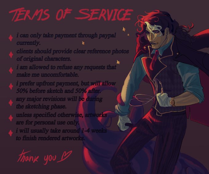 DM me if you're interested! i'll keep updates about whether or not my commissions are open on my account