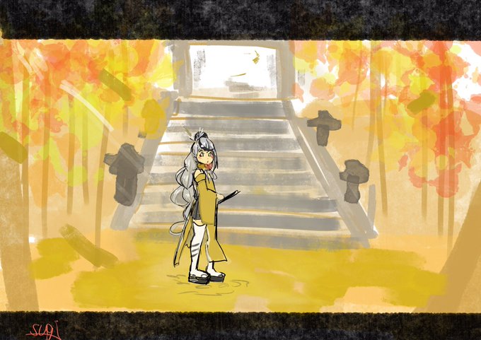 師匠はイチョウの森で一緒に修行すると 衣装が黄色だから見つけにくい! とツシマゲーの黄金の森で思った。