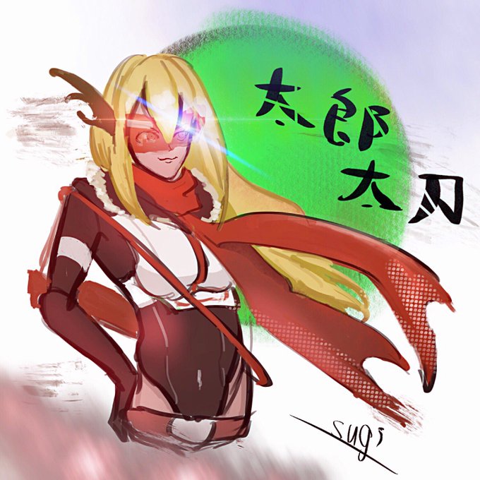 #天華百剣版深夜の真剣お絵描き60分一本勝負 #天華百剣お絵かき部 今回は、『太郎太刀』 ペイント後にアプリでフレアを入れて編集してます。 カッコいい仮面巫剣。