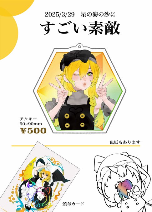 3/29 星の海の沙に 昼の部 スペース【星-10】いただきました。 アクリルキーホルダーがメインの頒布になります。 当日はよろしくお願いいたします。