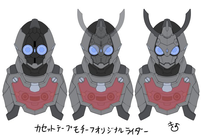 というわけでカセットテープモチーフのオリジナルライダー頭部です。描く前に頭の中でイメージしてた時は「絶対ダサくなるだろうな」と思ってたんですがなんか今まで描いた子達の中で1番真っ当にかっこいい気がしてきました。