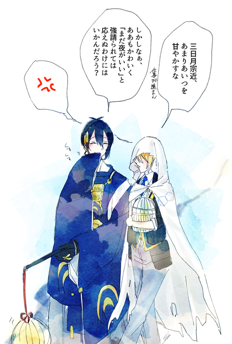 夜を連れ行く三日月と朝を導く山姥切の毎日の攻防 (主の望むまま夜を続けて寝かせてやりたい三日月vsさっさと朝を導いて審神者業をさせたい山姥切)
