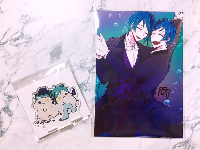 たかぎちゃん(@Takagi_rgtk )のプレゼント企画で頂きました😍💕💕ほんと🐬🦈ハムちゃんめちゃくちゃ可愛いすぎて、しかもネップリまで付けてもらって幸せいっぱいです❤️❤️ 本当にありがとう〜🙏❤️