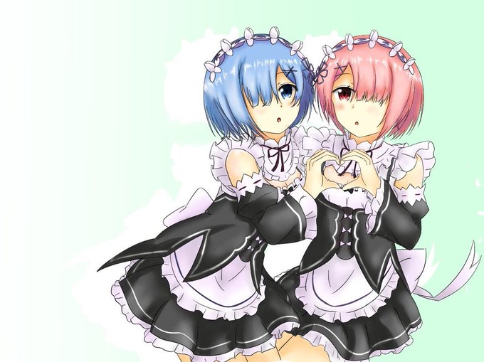 Re:ゼロから始める異世界生活よりラムレムを二次創作で描きました\(´・∀・`)/んバッ 良かったらrtふぁぼお願いしますっ>_< #リゼロ #rezero