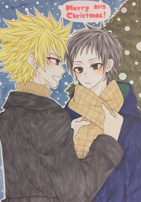 めり〜〜〜🎄🎄🎄 マフラーをプレゼントする先生と、予想外にまともなものを貰って訝しみつつも照れながら受け取る盾くんだよ〜〜