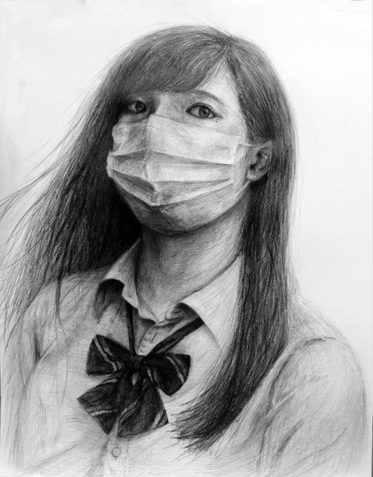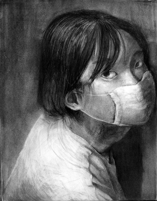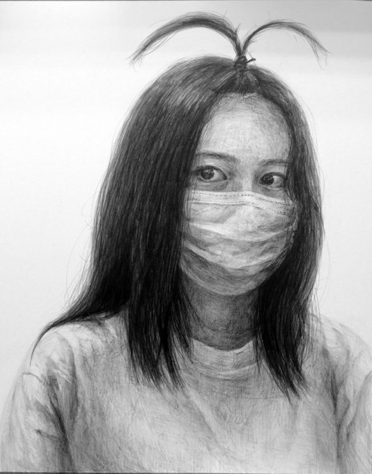 マスク姿の自分を見つめる眼差し。