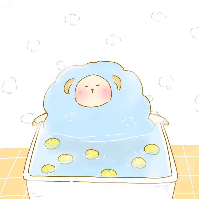 柚子湯でぽかぽか #ゆるいイラスト #冬至