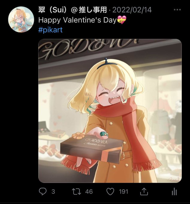 そういえばふと、このアカウントと推し事用のアカウント両方であげたバレンタインイラストの反応を見に行ってみたんですが、改めてタグって大事ですね🏷