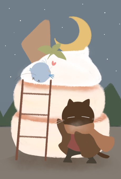 星降るスフレ~三日月を添えて🌙~ #猫 #イラスト