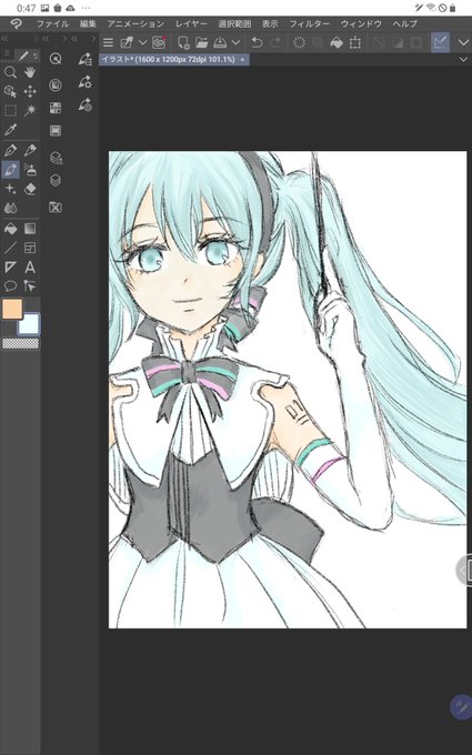 お友だちにリクエストいただいたのでミク描きました~。