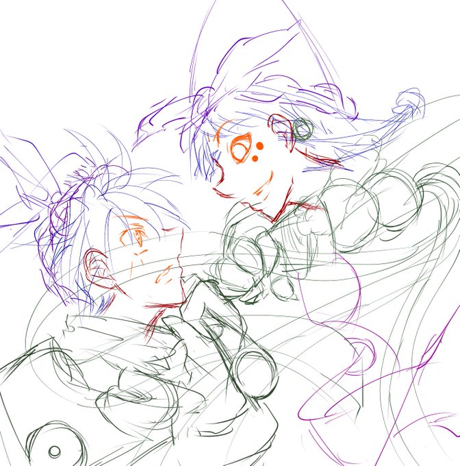 私用の申公豹と太公望のイラストの線画、