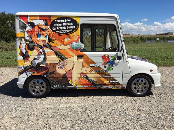 ニコルちゃんを用意するじゃろ? アホ毛足して手の文字は消してちょっと加工して別データ用意するじゃろ? はらぁ///(ほら)痛車の出来上がり! シンプルでそれっぽくなったから貼ってみようかしら。