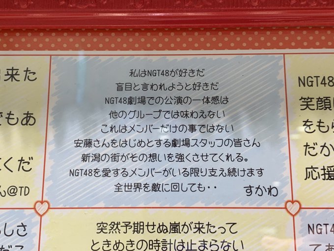 そもそもが秋元楽曲のファンで 秋葉原で曲が聞けると 06年1月 初めて劇場に出掛けAKB48を知る。 以後通い始める事になります。 大声珠理奈事件以降 栄に箱変 その後 元ドラフト候補者がいる新潟を応援し始める事に。諸般の事情で現在 流浪の民ですが AKB48&48G を 最後の最後まで応援していきます
