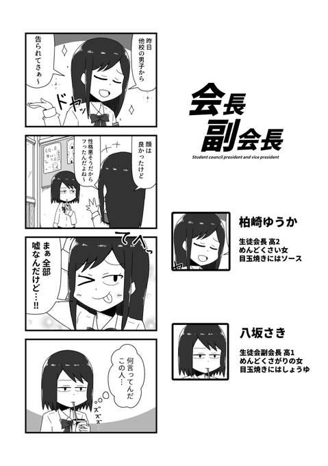 ちょっぴりウザイ生徒会長と冷静沈着塩対応の副会長の日常コメディ4コマ漫画です!