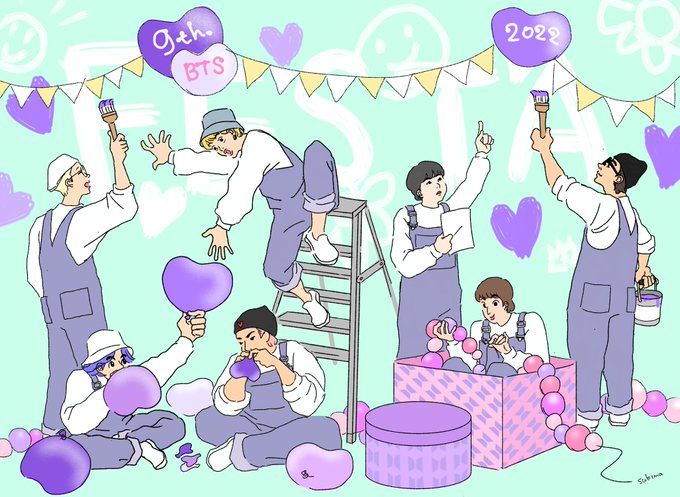 今月はなんか顕著に水色気分だったんだな。 #今月描いた絵を晒そう #BTS