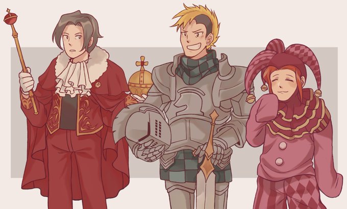 [#aai2] i remembered about that one capcom cafe art and had a really dumb idea. what if. a knight and a jester. there's also king edgeworth