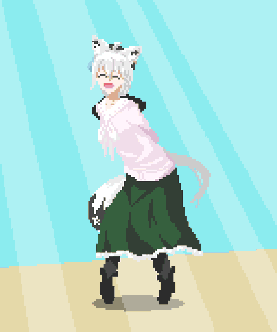 区切りがついたので進捗上げ…… これから足がガビるのを直しつつ腕のアニメーションを加えて、服や髪の毛を自然になびかせて、しっぽやリボン、三つ編みを追加で描いて……あ”あ”あ”あ”あ”!!!