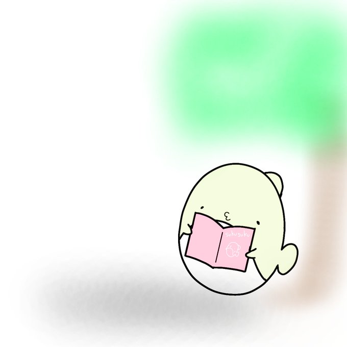 #おさかなといっしょに 木陰で読書📗 #イラスト練習中 #ゆるイラスト #ゆるいイラスト #ふぐ