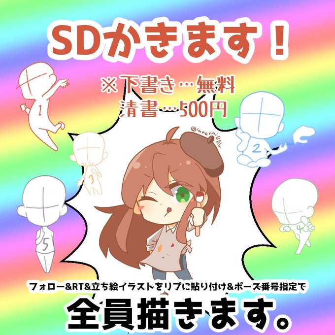 フォロー+RT+このツイートのリプにオリキャラや分身などの立ち絵&ポーズ番号指定