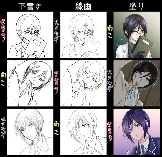 283ちゃん、わこちゃんとで下書き線画着色交換しました! 三者三様の薬研くんになりましためちゃくちゃ楽しかったです!!