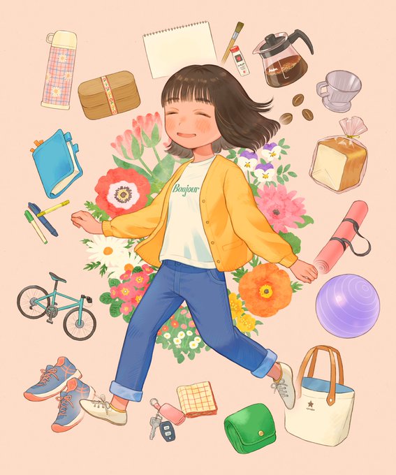#絵柄が好みって人にフォローされたい 久々にタグ失礼します~!日常をテーマにやさしく温かみのあるイラストを描いています🌷🥐