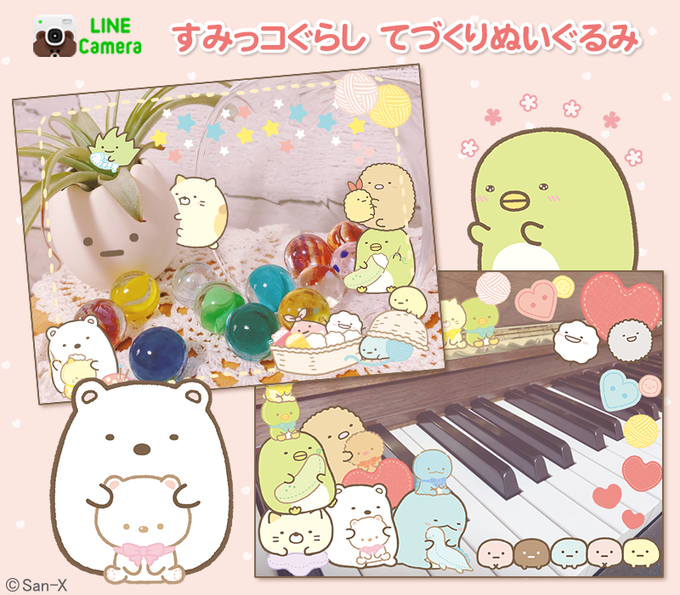 すみっコぐらしのLINE Cameraスタンプ第4弾はしろくまのてづくりのぬいぐるみや毛糸のモチーフが可愛い♪