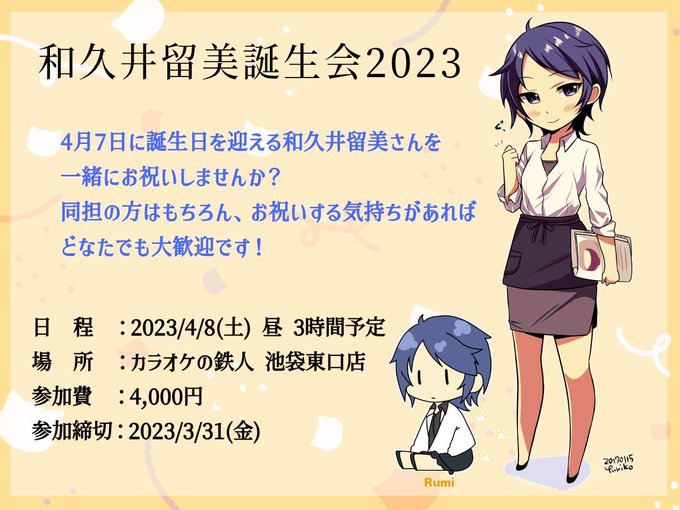 来月4/8に和久井留美誕生会オフを開催します!