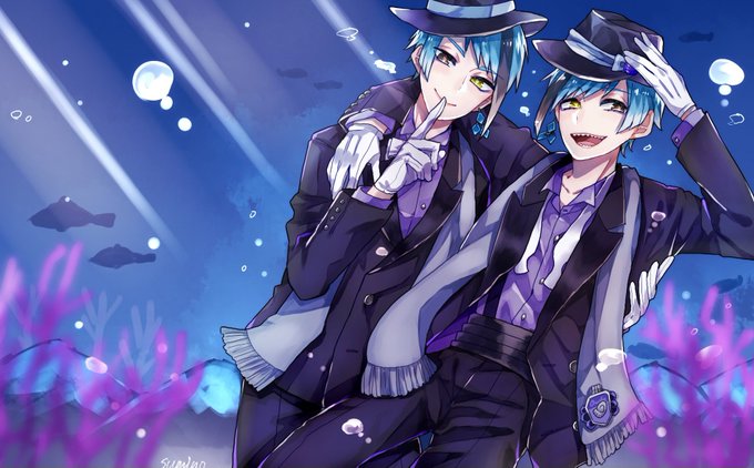 うみのなかのふたご🐬🦈 #ツイステファンアート
