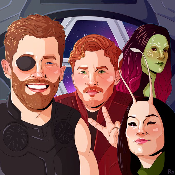 saw #InfinityWar the other day and needless to say it was amazing! no spoilers here - i just feel like if the movie had gone slightly different these guys would have ended up bffs! 😘 #Thor #Gamora #StarLord #Mantis #ArtistOnTwitter