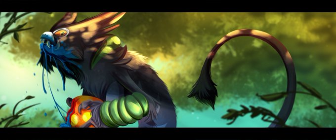 I really like that new poke #Zarude . Gave me a good excuse to dust off my painting skills. I couldn't decide if I wanted the composition to be like we're looking at it through leaves or not. #pokemon #PokemonSwordShield