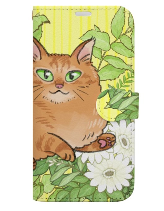 ところで妹がSUZURIに投稿したうちのねこちゃんのスマホケースあまりにもかわいすぎる私iphoneちゃうから使えれへんのですけど DNSMthanの【猫】お花とちゃーくん手帳型スマホケース #suzuri https://t.co/a5VRErdLCW