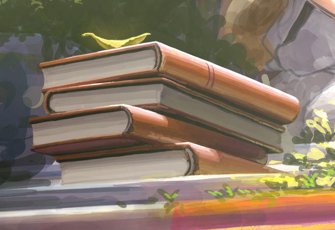 遠くにある本の紙の表現は、わざわざ線を引かなくても不透明度のブラシの重なりで出来る段差で表現できる。かも