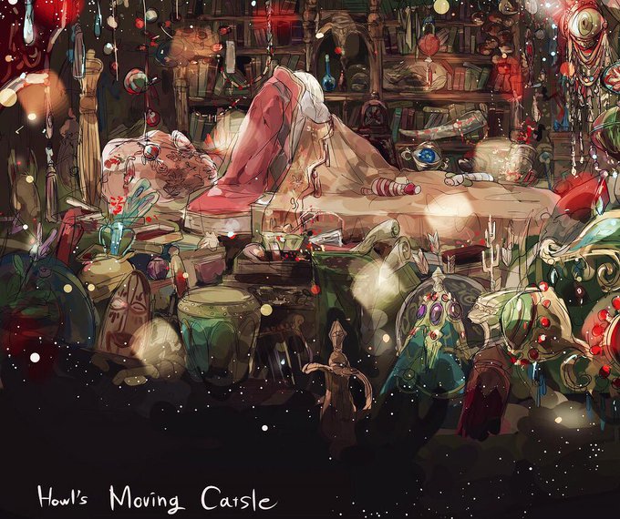 荒地の魔女が怖くて魔女避けのガラクタの中で蹲ってるハウル描きました~何でこうなった😇