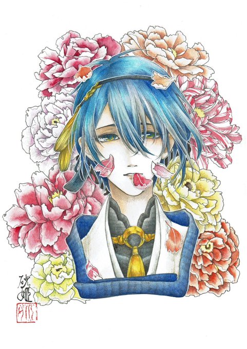 #皆さん線画と塗った後を見せてください この鶴丸と三日月もお気に入りなんだよね、自分的に!