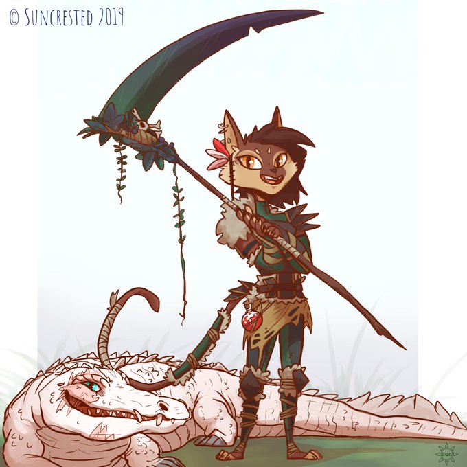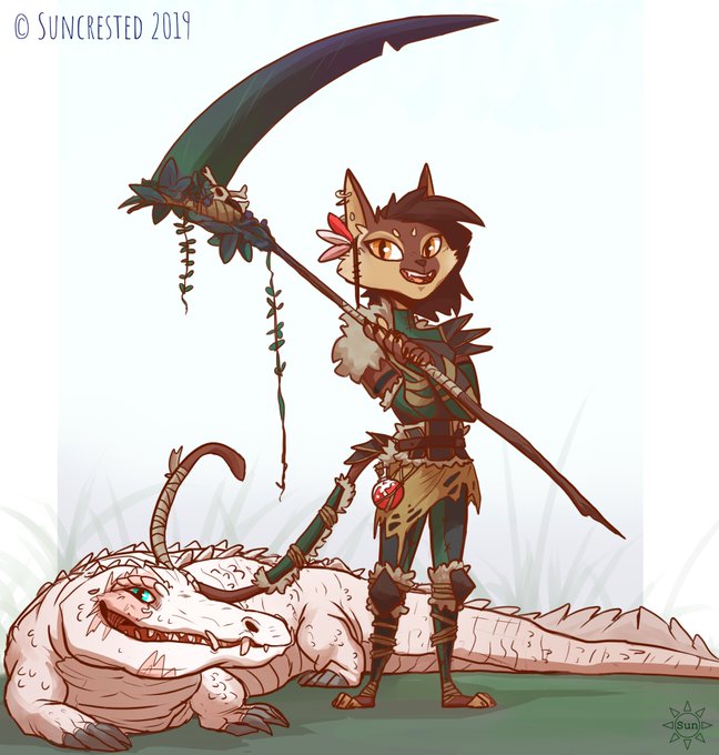 Just a cat and her croc 🐱🐊❤️my #Pathfinder characters, Aziza the druid and her crocodile companion Buttons :3