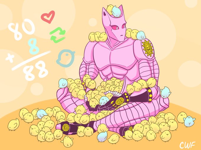 88 chicks piled on Killer Queen, thank you everyone! #いいねされた数だけ推しキャラにひよこを乗せる