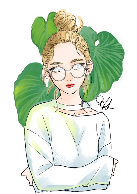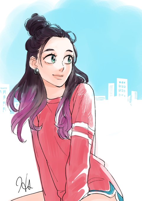 色ぬり練習のラフ。オルチャン風。カラー練習のラフやって満足しちゃって本番に行く元気出ないやつ沢山あるな…なので供養…
