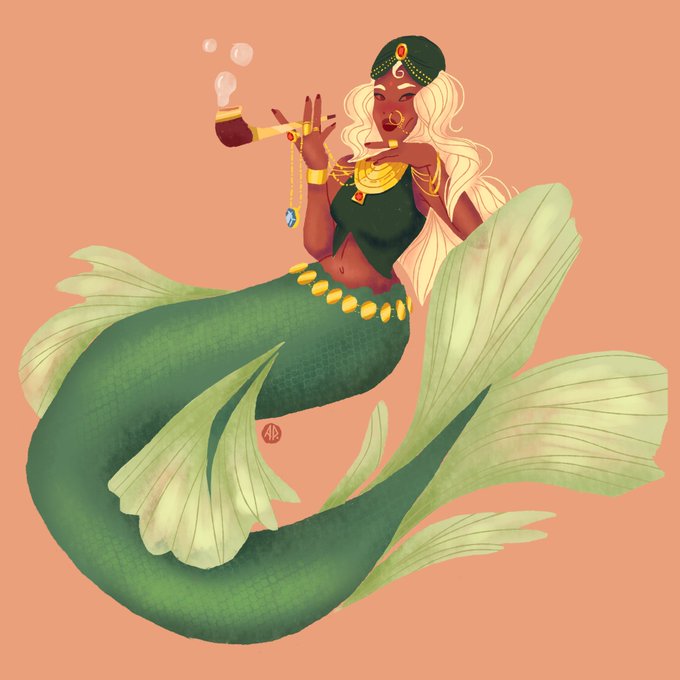 With the aid of visual data, imagination and a thirst for WOMEN IN GOLD ORNAMENTS, my brain created this! Happy #mermay !!
