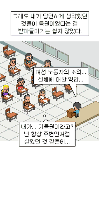 <나의 살던 고향은> 35화 ‘페미니즘’ 편이 업데이트 되었습니다. 대학을 졸업하기 전 마지막 여름학기에 학점 채우러 들은 수업. 정읍의 넉넉치 못한 재혼 가정에서 서울로 올라와 늘 주변인이라고 느꼈던 제가 당연히 누리고 있는 것들에 대해 처음 깨달은 순간이었습니다.