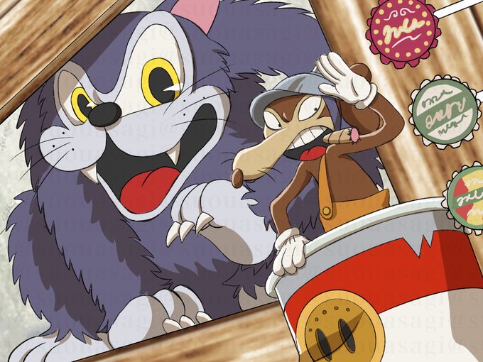 Knockout! 初めて描きました。 古いカートゥーン系の汚れが表現できたらいいのに… ヴェルナー伍長とカッツェです Knockout! This is my first time drawing this. Wish I could represent old cartoon type dirt... #カップヘッド #CapHead