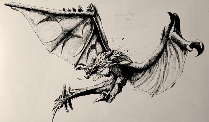 #KOFボード #落書き #モンスターハンター #リオレウス #アナログ絵 #イラスト #火竜 火竜 リオレウス。 さっきの KOFボードを AI に 塗ってもらいました。(*´ω`*)