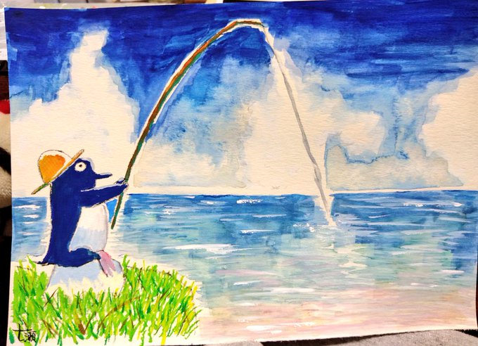 #オンラインお絵描き会 参加しました~楽しかった! 釣りするペン🐧 フォロワー以外でも、お絵描き好きな方、始めてみたい方お気軽に声かけてね😊