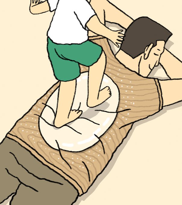 うどん作り体験Tシャツ メモ: うどんの生地が背中にプリントされたTシャツ。 うどんは足で踏んでつくる。 #構想