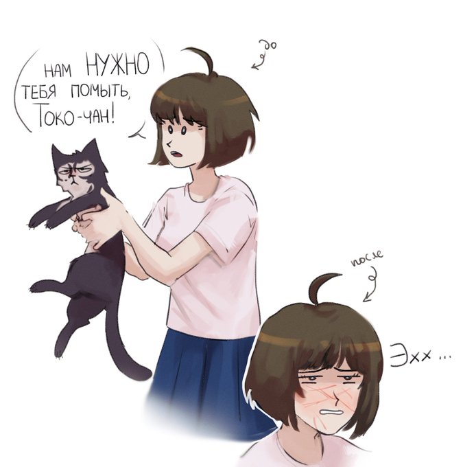 Touko and Komaru but Touko is a cat