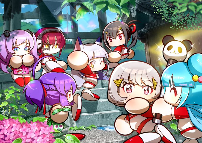 【依頼絵】 ナビゲータ組中心で初夏のおさんぽ🌿 リクエストありがとうございました! #パワプロ