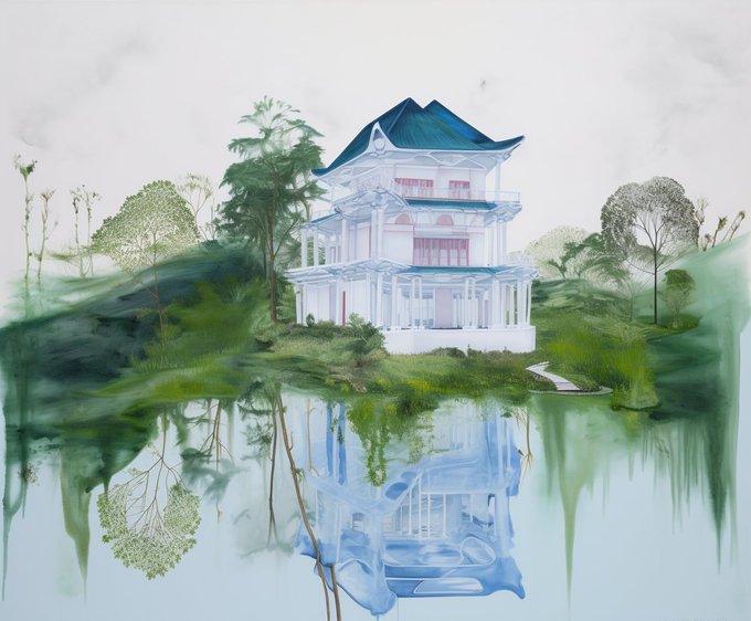 having an image synth mind cleansing and only prompting for paintings of buildings in serene landscapes