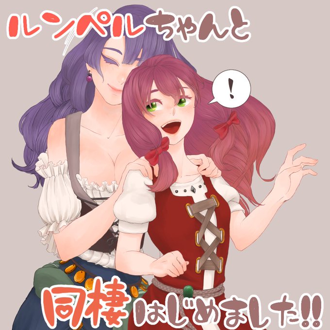 @husitomajo 鮪さん@maguroman_m_o のルンペルちゃんがエステルと一緒に暮らしてくれることになったので同棲記念に描かせて頂きました(*´∀`*)