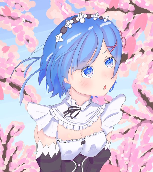 レム描いたー 桜を描きたかった #レム #レムりん #リゼロ #イラスト #絵描きさんと繋がりたい #イラスト好きさんと繋がりたい