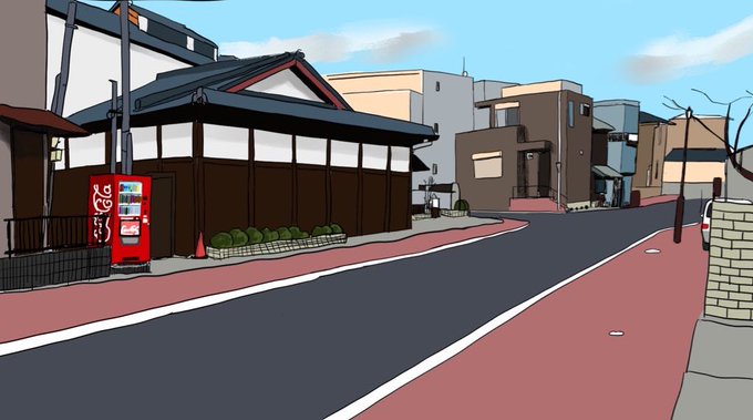 いひょー!すっかり忘れてて遅刻ー 一個は漫画の背景 #今月描いた絵を晒そう